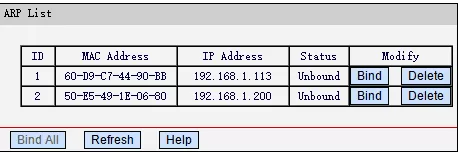 در بخش امنیتی تنظیم مودم مرکوسیس، می توانید مشخص کنید که چه کسانی مجاز به استفاده از وای فای شما هستند. برای این کار کافیست وارد قسمت Ip & Mac Binding و سپس Arp List شده و مک IP فرد مورد نظر را مانند عکس زیر وارد کنید. پس از ذخیره ی این اطلاعات، افراد متفرقه حتی با داشتن رمز عبور وای فای شما امکان اتصال به اینترنت را نخواهند داشت.