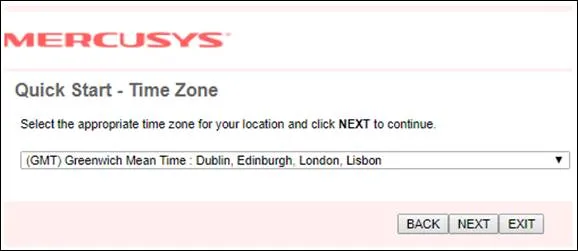 در این مرحله باید منطقه زمانی خود را مشخص نمایید. به طور مثال اگر ساکن تهران هستید، منطقه زمانی Tehran, GMT +3:30 را انتخاب کنید. انتخاب صحیح منطقه زمانی در عملکرد صحیح مودم شما بسیار تاثیر گذار است.