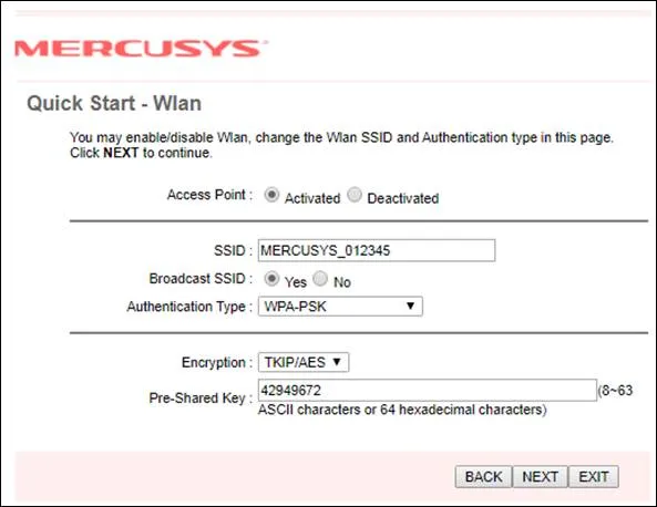 گزینه ی Authentication Type بهتر است بر روی WPA2 – PSK و گزینه ی Encryption نیز بر روی AES باید تنظیم گردند. انجام این موارد برای بالا بردن امنیت مودم شما ضروری است. در نهایت برای ذخیره شدن این تنظیمات مودم بر روی NEXT و سپس save کلیک نمایید. تنظیم مودم مرکوسیس در این مرحله به پایان می رسد.