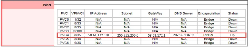 به منظور بررسی عملکرد صحیح مودم، می توانید وارد صفحه ی status شده و بررسی کنید که آیا به شما ip داده شده است یا خیر؟ اگر ip شما در حالت UP قرار داشت یعنی اینترنت و مودم شما به درستی فعال شده اند. اگر در وضعیت DOWN بودید بهتر است با شرکت ارائه دهنده اینترنت خود تماس بگیرید.