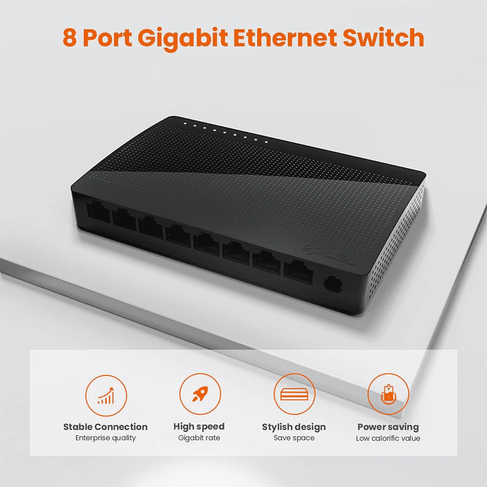 سوئیچهای اترنت گیگابیتی Tenda SOHO ساده و قابلیت اطمینان را برای دفتر کوچک یا شبکه خانگی/دفتر می باشد. در مقایسه با یک سوئیچ 100M، سرعت انتقال را تا 10 برابر افزایش میدهند و تنگنای پهنای باند آبشاری را از بین میبرند.