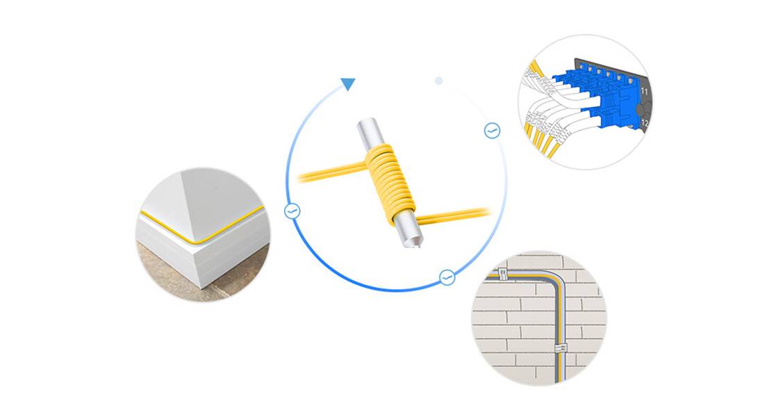 این کابل دارای شعاع خمشی کوچک است و با طراحی نوآورانه هسته و افزایش حساسیت کم خمشی ماکرو از خمش اضافی جلوگیری می کند. سیم پچ فیبر غیر حساس خمیده برای پشتیبانی از مرکز داده و برنامه های کاربردی FTTH و کابل کشی با تراکم بالا ساخته شده است .