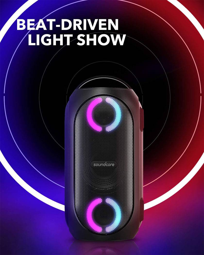Soundcore Rave Mini یک اسپیکر بلوتوث قابل حمل با دسته عمودی داخلی، نمایش نور LED چشمگیر ، پورت شارژ USB، و درجه صدای بالا است. Rave Mini آنقدرها هم کوچک نیست، اما اندازه ای دارد که هرکسی می تواند به راحتی آن را حمل کند.